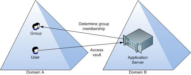 A user in Domain A can access the Meridian application server in Domain B and open a vault as long as there is full trust between the two domains. But if there are Meridian security roles assigned to the folder in the vault that the user attempts to access, Meridian needs to be able to query the domain of the user to determine the user’s group memberships. In order to be able to do that, the account in Domain B under which the AutoManager EDM Server service is running needs read access to the Member Of attribute of the user in Domain A.