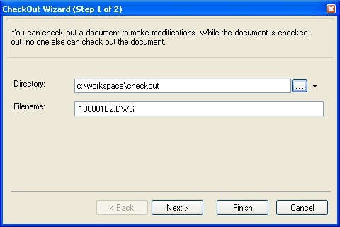 Note    By default, when a document is checked out, it is copied to a preconfigured local folder, for example, C:\workspace\checkout.